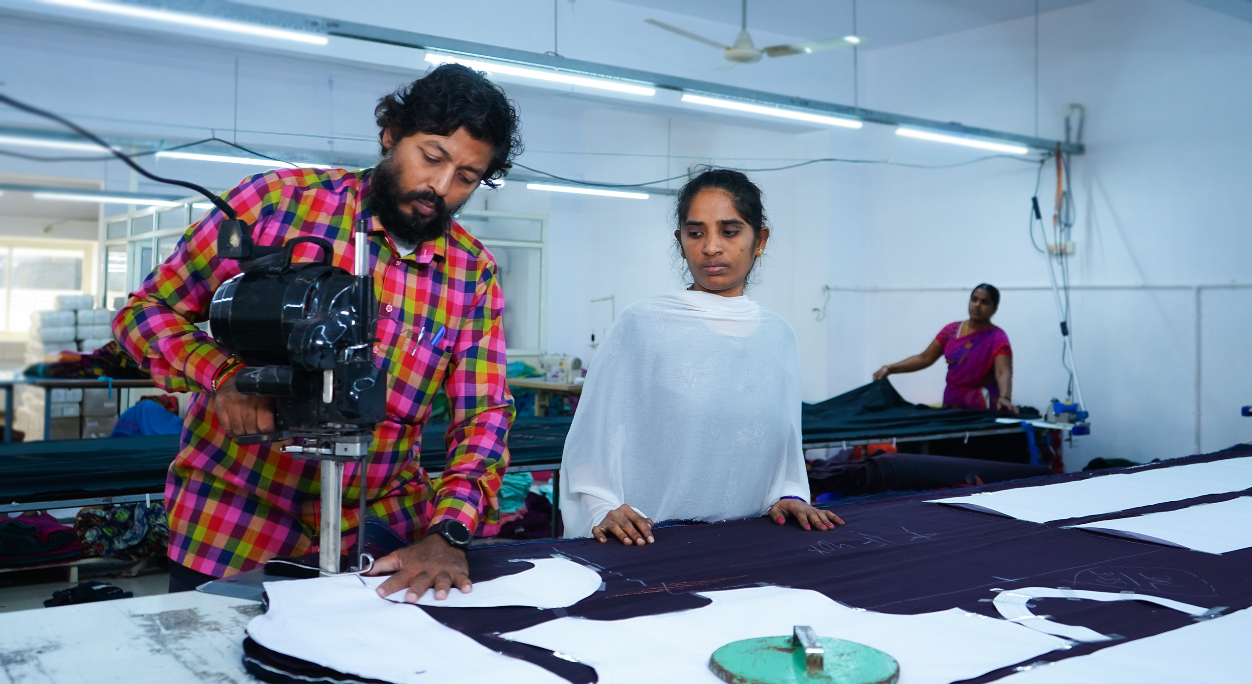 Garment manufacturing that starts with sample development the Production processes are Sampling development approval then fabric sourcing, cutting, sewing, thread trimming, pressing, quality checking, folding and warehousing these entire processes in single roof available in our unit.