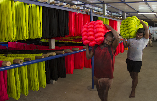 : In yarn dyeing, the yarns are dyed first before the fabric manufacturing stage. The yarn dyeing happens in hanks .